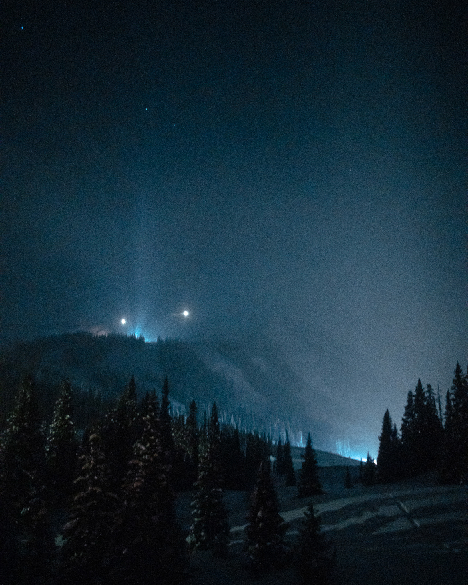 A stop at the side of the road on a late night drive home.